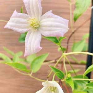 クレマチス リトルネルの3番花😊✨ ほんのりピンク色💓 花弁の先端がクルンとなっていて可愛い💓 切り戻せば冬までにもう一度楽しめるかな〜✨