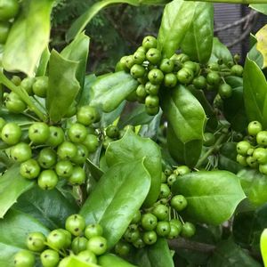 クリスマスホーリーがたくさんの青い実をつけてる💚💚💚 冬には真っ赤になってクリスマスがまたやって来る❤️💚 気が早いと思っても、きっとすぐ来るんだわ😞 歳をとると何でも早くやってくるのよね〜😢😢