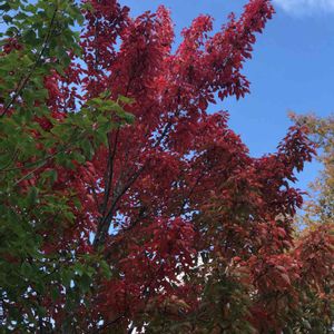 日本の固有種である背の高いハナノキ(花の木)の紅葉がとても美しい 毎日ウォーキング時に見上げている 花の咲き方も珍しいので毎年春には楽しみに観察している ハナノキ(Wikipediaより抜粋) (花の木、学名 Acer pycnanthum)はカエデ科カエデ属の落葉高木。カエデの仲間である。ハナカエデとも言う。 木曽川流域などで自生しているが絶滅危惧種でもあり、自生地では天然記念物になっている木もある。 最近は公園などでも植栽されていて、我がニュータウン内にも数本ある。 花期は4月で、葉が展開する前に赤い花を咲かせる為、これが名前の由来になっている。