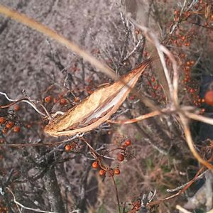 夏に名前を教えていただいたガガイモ~ 鞘が弾いて種がみえてた👀 あのカワイイ💠からどうやってこんな舟の形になるのか⁉️ 来年はチェックしようっと😊