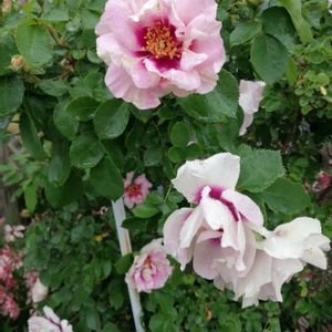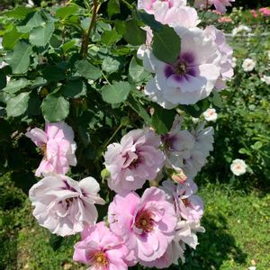 5月のアイズフォーユー🌹 暑さにも強くて次々に咲くバラですが、流石にこの夏はヘロヘロにお疲れです。 柔らかなセミダブルのライラックピンクに暗赤のブロッチと蕊が印象的です。