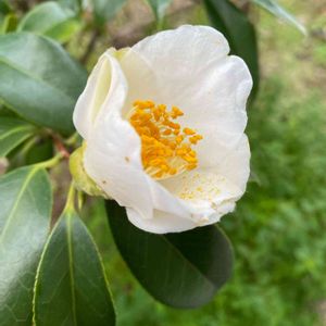 椿 (もろひと、又は、もろびと) 楚々と咲く白椿、。 師走の忙しさと、コロナ禍を、しばし 忘れさせてくれました。 関西地方の藪椿の変わり枝から選抜、 栽培されたそうです。
