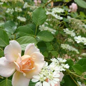 バラ・エリザベススチュワート 今年は元気!でも横に広がった枝を持ち上げてやれないの😥 写真はこれで良いけれど🤣