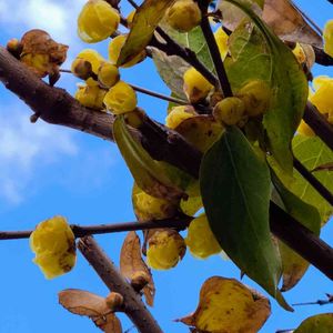 ロウバイ(蝋梅) 別名:カラウメ(唐梅) 花言葉:「ゆかしさ」「慈しみ」「先導」「先見」 大好きなお花が咲き始めました😊 樹が高すぎて 香りが届かないのが残念です。