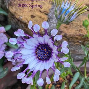 ダブルオステオ シルバーナイト 開きかけ、やっと綺麗に撮れたかな☺️ 100円種からのワスレナグサと寄せています そちらはやっと蕾が見えてきました💙
