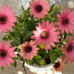 花壇に植えてるオステオスペルマム。 この色好き🥰 購入して花壇に植えたら、一気に元気がなくなって全部下を向いてしまって焦りました💦 新しい環境に慣れなかったのか… 2日後には元気になって、良かったε-(´∀`; )