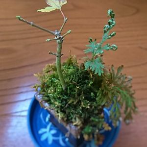 ☆新芽☆ 紅葉のミニ盆栽 葉が一枚残っている状態で新芽。