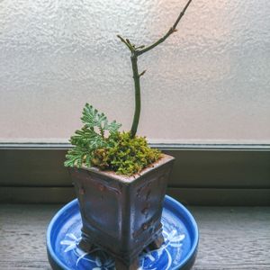 ~引き寄せの法則??~ 歳を重ねる毎に 日本文化への感心が加速する今日この頃。 人生初の盆栽屋さんに行ってみましたが、盆栽は数点しかなく殆どが『素材』でした。 そこで夫と好みが一致した小さな鉢(植物なし)を1つだけ購入。 その後、近所の人からモミジの盆栽素材がいただける事に! 駄温鉢に入っていた物をすっぽり入れ換えただけで、まだ知識もワザもありませんが、これを機に盆栽を勉強できればと思います。 ~自分用メモ~ No.36 紅葉の実生 2019年9月16日 頂き物 豆鉢 同年9月購入