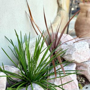 今日のお花のコルジリネ。 どんどん大きくなっていたのに、1年ほど前からこんな感じで葉が成長しない。茎と根はグラグラしないので、しっかりしている様子。 この門袖の裏側にシマトネリコを植えていて大きくなっているので、地植えだけど根詰まりで大きくなれないのかな?と思ってます。 -------------------- 以下、半月前の作業記録。 右側に植えていたグラス(フェスツカ・グラウカ)が突然元気がなくなってたので、引っ張ってみたら根がなくごっそり抜けました。 そして、そこにいたのはやはりコガネムシの幼虫。 すぐ捕殺しましたが、1匹しか見つからず、地植えなので全部土を掘り起こすこともできずそのまま。これ以上いないといいけど… でもグラスがコルジリネより大きくなり、右側で主張してバランスが悪くて不満だったので、実はコガネムシの幼虫にちょっと感謝してたりもする笑 空いたスペースには、うちで増えたアガベ・チタノタBBの子株と、サボテン世界の図の子株を植えました。 この花壇は根っこだらけで苗を植えるスペースがなくなったので、去年の春にロックを配置してごまかしましたが、それまではカラーリーフをたくさん植えこんだ花壇でした。(みどりのまとめあり) イベリスだけはその頃からの名残で、この春もちゃんと咲いてまだまだ元気なので、ちょっと場違い感はあるけど、そのまま残しています。 コルジリネが復活して大きくなることと、アガベが成長して全体のバランスがよくなることを願ってます。