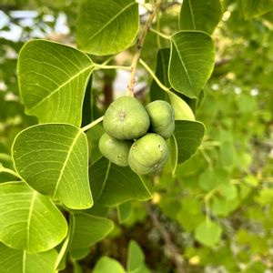 3年目にして ナンキンハゼの実が! めちゃ嬉しい! 聞いた話によると、植えてから実が付くまでけっこう長くかかるよ!ってことだったので、すごく嬉しい!