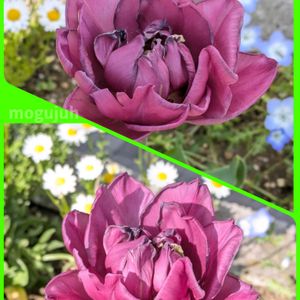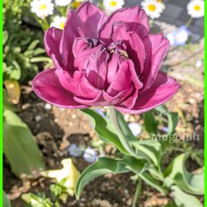 2025年4月21日撮影 横浜市内 バス停留所近くの花壇にて。 八重咲きのチューリップ 🟩🟩