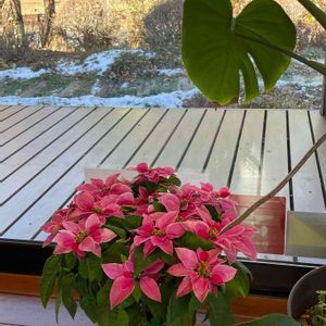 [カフェに飾られたお花💐との出会い]① 昨日は沢山の皆様に沢山のいいねや 沢山の心温まるコメントを頂き、 ありがとうございました🙇♀️🙇♀️🙇♀️ とても嬉しかったです😭💕💕💕 gsを始めて本当に良かったしおかげ様で 幸せな気分になれました🥰 本当にありがとうございました🙇♀️ 昨日のカフェ☕️に飾ってあった プリンセチア💗 とても可愛くて眺めながらランチ出来て 幸せ〜でした😆💖💘