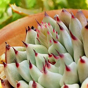 毎月13日と14日は葉挿しの日🏷に参加させてください🌟 葉挿しの苦手な私の事だから、そうそう上手くいくはず無いよねぇ〜と、葉っぱを小さな器などに隙間なくギッチリ挿しました😅 そうしたら、意外にもベビちゃん👶が出てきて成長を始め。。😳、どの時点で植え替えしたら良いのものか。。🙄❓ 嬉しい悩みとなっています〜😆