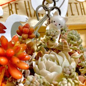 毎月とても楽しみにしている✨ニャンニャン祭り🏷に、1.5㌢のチビニャンで参加させてくださ〜い😺❣️ 一緒に映っているミニ籠寄植、今年も良い色になってきました〜❣️😆❣️