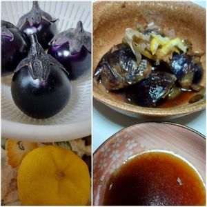 寒波❄️が来る前に収穫したとろーり炒めナス🍆を自家製ユズポン酢で煮浸し料理🔪🎽😋