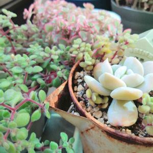 花芽の葉挿しからの反り返り組たち。 うーん?時計回りに、ドップラー(スワンレイク)、ホワイトゴースト、ラウトップ、レボリューション・・・かな?多分。 反り返り系だけなのか、花芽の挿し成功率が高くて放置でいける気がする( ˘꒳˘ )