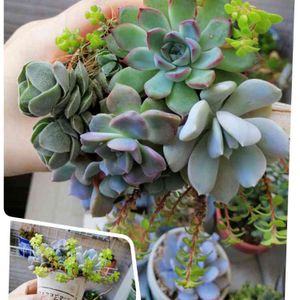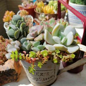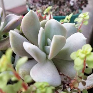 珍しく窮屈気味に寄せました💕 カット✂️しようかどうか迷いましたが 寄せ植え鉢もぎゅーぎゅーでムレてしまいそうですし、悩ましいです😅 色白のラウトップのお子ちゃまが可愛いです💕