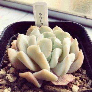 ラウトップ♥ 冬の多肉福袋でゲットしてから、寒さに弱かったのかどんどん小さくなってたのですが 春に一気に大きくなった~👍 でも、やっぱりこの子は難しい😤イマイチ綺麗に育てられない😩さっそく焦がしてさしまったし😭すまん。