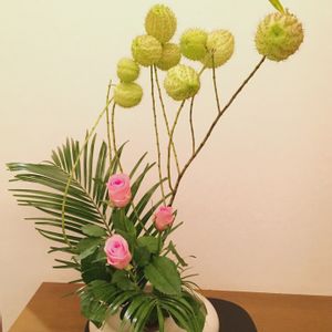 『風船唐綿』『アレカヤシ』『薔薇』を生けました(^^)