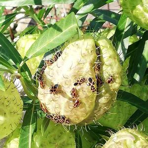 おはようございます😃 風船唐綿🍏の果実には蜜があるのかな❓😅 気持ち悪い虫が群がっています❓😅
