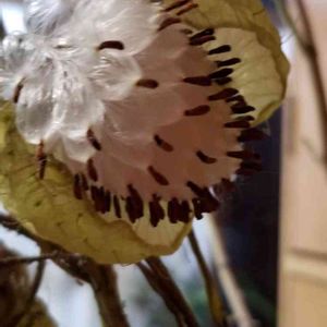 本日2枚目投稿 先月末に鹿児島の実家に帰省した際 お隣の畑で撮りました。 風船みたいな実がパカッと割れて、きれいな種が飛び立つ準備中✨ 茎から出る白い液は毒性があるそうなので要注意です⚠️