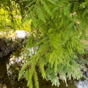 ラクウショウの木(愛西市親水公園) ヒノキ科 名前の看板が有りました。 葉の形がメタセコイアに似ています。 (メタセコイアはスギ科) カワセミが小枝に停まるかも🤔
