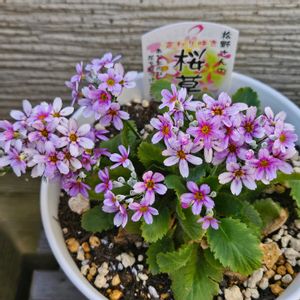 松野さんの変わり咲き桜草 11月8日(土)にお迎えしました🗓️ 初めて園芸店でこの子を見た時に 松野さんって誰?(そんなところが一番気になる)と思って😵💦 何色にしようと物色中に残数の1番少ないこの色をGETしました~😃(売れて→残数が少なくなったという考え方) お迎えした時は紫色だったけど😅今ではピンクのグラデーションカラーと思っています~😍 株の生長は見れませんが😵💦春までにはもっと大きな株になると思っています~😃✌️(願う🤣)
