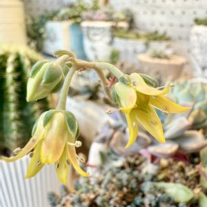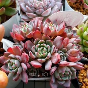 七福美尼(だと思う)。花かわいいです。ピンクの爪も、ちっさい子株もかわいいです。