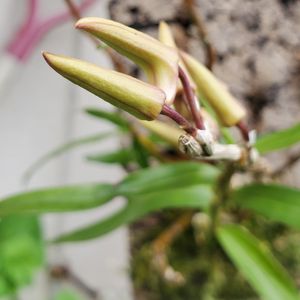 屋久島セッコク🌸 花芽が着きました ⸜(๑´꒳`๑)︎⸝🌱🌱 今年は花🌸見られそうです🎵 まだ セッコクは この子だけです。 雨ざらしの方が 成績良いです (๑°꒵°๑)・*♡🌱♥ 花芽可愛いです。 六角レンチみたいに見えるのか 可愛い〜( *´꒳`* )♥ 沢山着いてます🎵 ⸜(๑´꒳`๑)︎⸝♥🌱