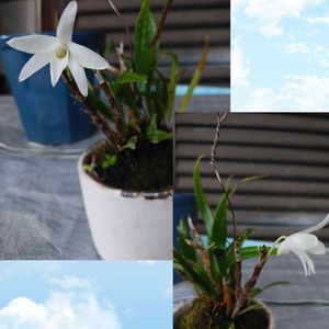 今日もお疲れさまです😌✨ 仕事が終わり、庭で水やりをしていて なにげにふと目に飛び込んできた☺ セッコクの花が咲いているではないか 水やりに注意していました(〃艸〃)ムフッが 蕾が見れなくて😢😢😢 何色が咲くのか楽しみにしていたので白でした☺☺