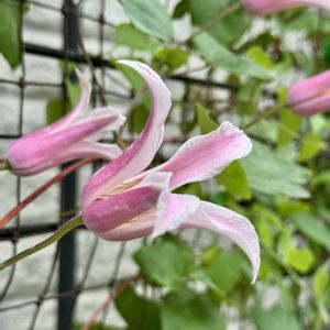 ♡クレマチス・アイフクシマ・エールフクシマ・プリンセスダイアナ♡ 🩷ダイアナ三姉妹🩷 2年前にプリンセスダイアナをお迎え! 昨年エールフクシマ、今春やっとアイフクシマをお迎えしました。 アイフクシマは昨年から探していてもなかなか店頭で出会えず!やっと今春地元の相馬市の生産者の知人の方から譲り受けましたが苗🌱が小さくなかなか成長しなかったので諦めてましたが先月末やっと1輪だけお花が咲きました🙌 ⚫︎アイフクシマ・エールフクシマはプリンセスダイアナの新枝咲きで福島県相馬市の高玉さんが生産した新品種(2020年) 🏷️木曜日は桃色