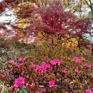 六義園の狂い咲🌸ツツジ🌸の花🌸 師走だというのにすごい😱 紅葉🍁と一緒に咲いてるのがシュール✨