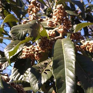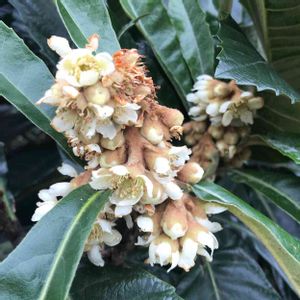 今日のお花🌿ビワ(枇杷)🌿 バラ科 シャリンバイ属 果実の形や葉が琵琶の形に似ているという由来 ラクダ色の毛に包まれたもこもこの地味な蕾から白いものが覗いていた時期を過ぎて、お花もちょっと地味目な花 そういえばシャリンバイのお花に似ているかも?