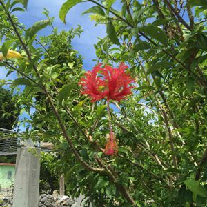 沖縄県の公園に咲いていた ❤️風鈴仏桑華🎐と ハイビスカス💛