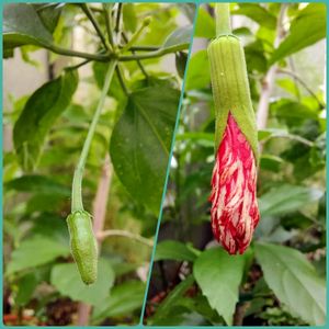 今日もお疲れさまでした😌💓 ~風鈴仏桑花(フウリンブッソウゲ)~です🌺 葉のない苗木をお迎えして 8ヶ月、 1週間前に小さな蕾を見つけました(左) 昨日 先が赤くなり、 今朝は赤い蕾が膨らんできました🎵 見たことのない美しい🌺に 会えるのが 楽しみです😍💓