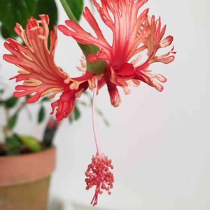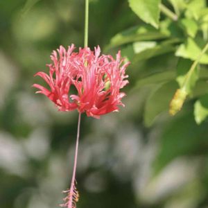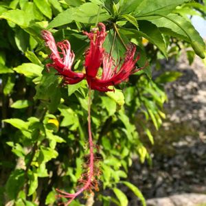 フウリンブッソウゲ 仕事で植物園に行きました(役得です😊) 初めてお目にかかったお花に目が釘付けでした👀✨ その名の通り、 風にゆらゆら揺れる姿は風鈴そのもの。 優雅〜・:*+.\((´∀`))/ ハイビスカスの品種改良にもひと役買っているとか…