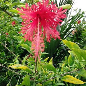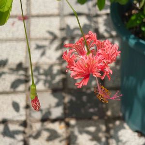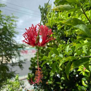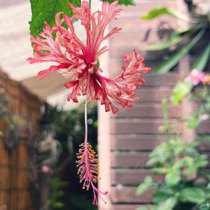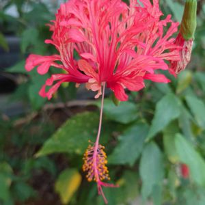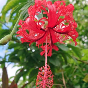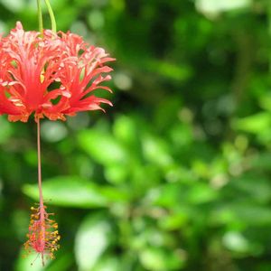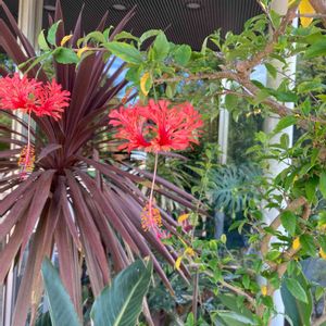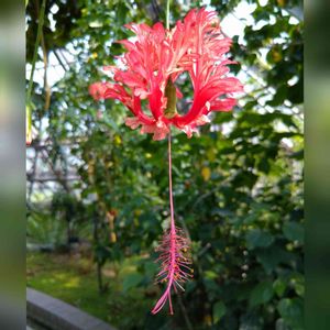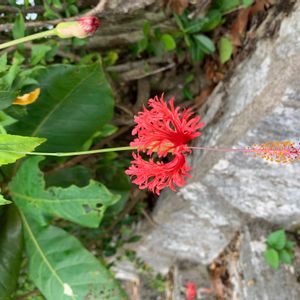 今日のお花の🌺ハイビスカス🌺 このお花は「風鈴仏桑花(フウリンブッソウゲ)」で、反り返った花びらと長い雄しべが印象的なお花です✋ 和名である風鈴仏桑花は、その見た目通り、花の形状が風鈴に似ているからというのが由来だと言われています🤗🎶