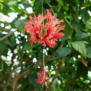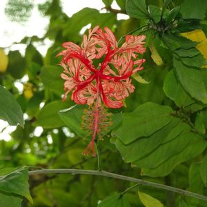 フウリンブッソウゲ✨ アオイ科 アフリカ東部のザンジバル島原産 反り返った赤い花弁からおしべやめしべが 長く垂れ下がる様子が風鈴のように見える “フラミンゴなどの品種で知られている 「コーラルタイプ」と呼ばれるハイビスカスの 園芸品種は、この花を親として作り出され 花弁の切れ込みやフリルのような咲き方などが特徴 そばのプレートより抜粋 何度も訪れていましたが この時期ではなかったのか 初めて出会いました 艶やかな姿と繊細な造りに見惚れました🤗 3枚目 美しい蔦を発見✨ ほっこりしました😊 2024.12.1撮影 🏷️真っ赤な火曜日 🏷️スライドショー♪ 🏷️パワーをあなたに 🏷️みんな負けないで! 🏷️優しさをありがとう♡ 🏷️花友さんに感謝♡ 🏷️楽しく元気に頑張ろう 参加いたします😊