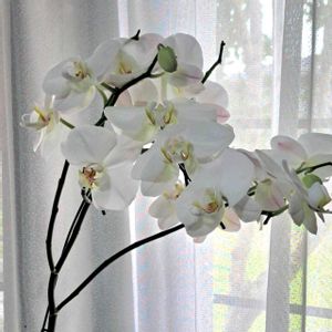 おはようございます。 ☁️*⋆ฺ࿐ お隣さんから頂いた 胡蝶蘭がほぼ満開になりました🥰 斜めに傾いて転けそうだった のでちょぴり体制の立て直しを してあげましたねぇ〜 うすぅ〜いピンク🩷色も 入ってて綺麗ですよ〜😄 3枚目は 今季初のブッソウゲさん 開花です。👏👏 地植えにしてみました。 でっかく成長するだろうなぁ〜 . . 𖥧 𖥧 𖧧 ˒˒. .