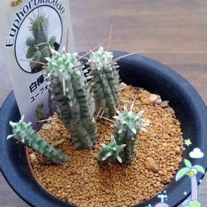 改めまして白樺キリンです。 トゲがあるのに多肉植物。 多肉なのに白い仔。 という個性的な存在です。 トゲが白くてヒゲの様だし 小株がポツポツと顔や、 手の様でやっぱりかわいいな〜😍 ユーフォルビア・ミルクトロン