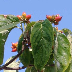 ハナミズキ 田んぼをはさんだお隣さんのハナミズキに 赤い実がなっていたので急いで家のを見たけど 全くありませんでした お隣さんにお願いしてpicを撮らせてもらいました かわいいなあ~♥️