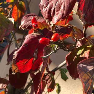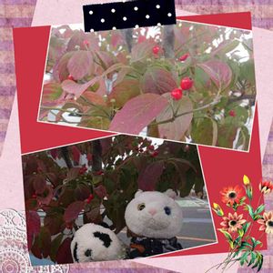 近くの小さな緑地に 秋が来た‼️ ハナミズキの葉も実も 色づいて〜