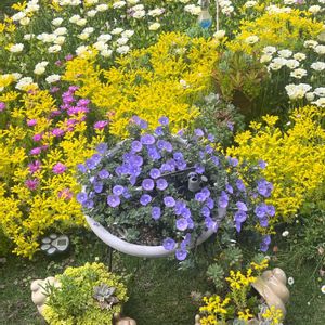スーパーの入り口に飾られたお花の寄せ植え鉢 花蛍可愛かったです🟡🟡🟡 このスーパーではいつも入り口にお花が飾られています✨ 昨日、関西万博開催されましたねー あいにくの雨のお天気で濡れながら行列に並んだ方もいた様です💦 ブルーインパルスは雨の為、中止になったとか残念でしたねー