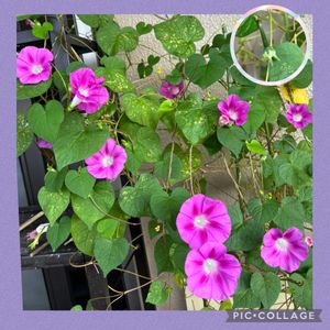 今朝の朝顔達も元気です ①一重のスプリットペタルの種は今までに私が見た種の付け方と違ってぶら下がるタイプ 幾つか出来ています🙌 ②原坊の朝顔今朝も4輪咲いています💙 こちらも種が少しだけど出来ています また種繋がりができるかもー 今週も宜しくお願いします🙏 今夜はお月見🎑ですねー 昨日の月も綺麗だったけれど、今日もなんとか見られそうです🌕