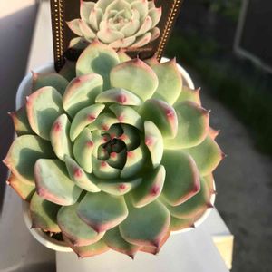 桃太郎さん* ピンクのふち&爪が可愛い(*´-`) もう鉢から、はみでちょん(。・ω・。) すくすく成長中…♡*