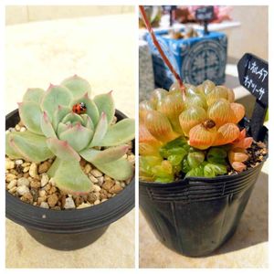 左👈先日picした桃太郎✕てんとう虫💓 右👉オブツーサ✕カメムシ💔 なんてこと!同じ虫のお客様なのになんでこんなにも歓迎されないの‼😨 お迎えしたばかりのオブツーサ❤(ӦvӦ。) まだカップのまま。 被写体としてバッチリなのに、カ、カメムシOnなんてイケてなさすぎるwww (´;ω;`) 子株がもりもりしてまもなく花も咲きそうな楽しみな子、カメムシに負けずに可愛く育ってね♡
