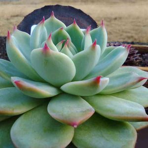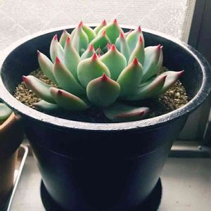 桃太郎💖 多肉にはまりエケベリアに興味を持ち最初に魅了された子✨ 家には表情が違う桃🍑ちゃんがいくつか、、今一番爪が真っ赤な子❤️(#^.^#)