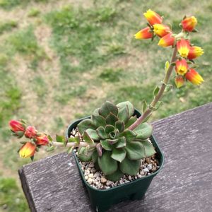 ジョアンダニエルの花 エケベリアの花はもう終盤… と思っていたら派手な花が咲きました🌸