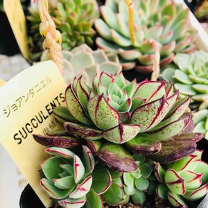 名前が分かりませ~ん💦🙏 だいぶ大型です。 葉の質感はエケベリアでは無いみたいです🤔 いつ、どうやってお迎えしたんだっけか・・・? メルカリのおまけ・・・だったかな? 早速、教えて頂きました❗😄 ジョアンダニエル 特徴から間違いなさそうです♪ カッコいい名前もっていたのに、知らずにいてゴメンよ~🙏