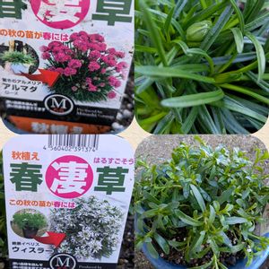 昨日園芸用土をを買うためにお店を覗いてみました☘️ ついでにシクラメンとビオラも欲しかつたのですが お目当てのがありません😅 上下共に切れていますが想像して ね🤭 折角なので5点購入しました☘️ ①上 アルメリア 下 イベリス どちらとも古株がありますが 木質化しているので迎えまし た😃 2枚目 よく咲くすみれ.八重咲きパン ジー.チランジアです